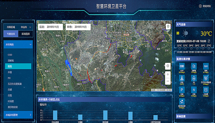 建立遥感黑臭水体评价体系,通过演示平台实现城市黑臭水体遥感监管系统示范,在展示平台实现遥感影像反演识别筛查、人工实地核查、治理过程监督、治理成效评价四个过程部分,实现智慧水体空天地一体化检测、监测与治理全程管理示范。