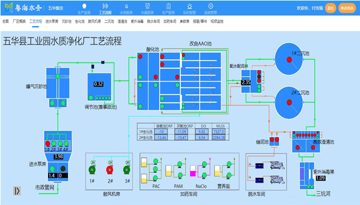 智慧污水厂解决方案实现从污水收集到出厂清水的全流程工艺闭环控制,以及多厂站、管网的集中调度和科学管理,对生产曝气、药剂投加等关键环节实现智能控制,有效提升工艺运行和出厂水质的稳定性,建立以调度中心为核心的厂网一体化集中管理模式。